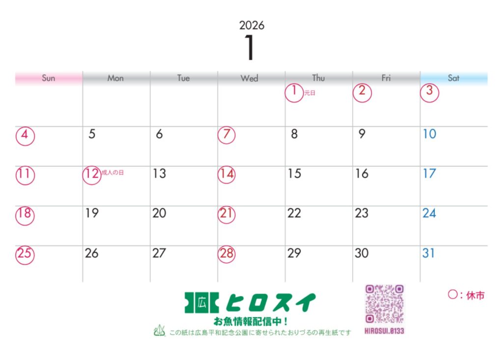 1月営業日のお知らせ