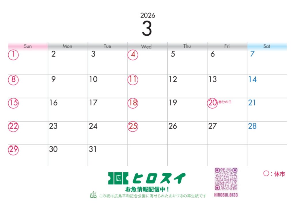 3月営業日のお知らせ